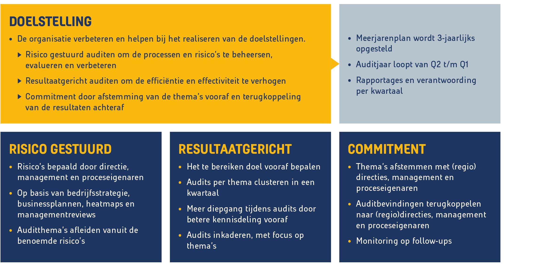In overleg met de raad van bestuur en de raad van commissarissen is voor het komende jaar weer een aantal focusgebieden voor het auditprogramma aangewezen. De focus van het auditprogramma zal in 2023 komen te liggen op het handhaven van reeds bestaande processen (conformiteit), voorspelbaarheid, naleving Algemene Verordening Gegevensbescherming en de borging en implementatie van de benoemde verbeteracties.